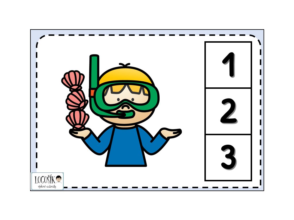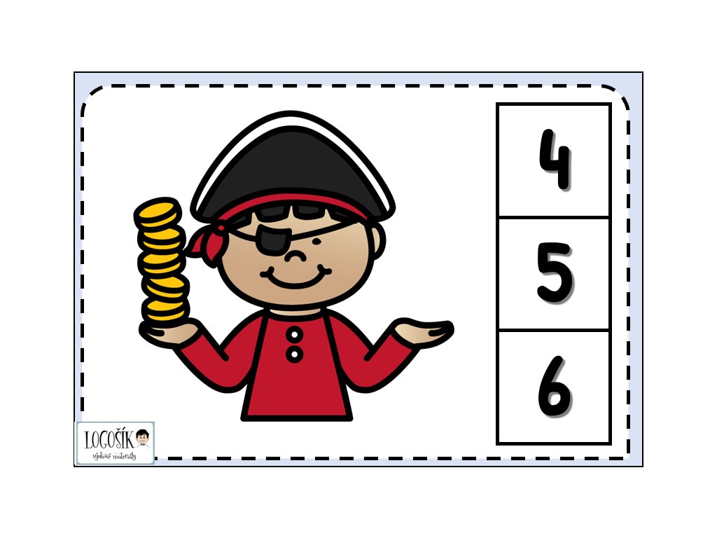 Kolíčkování. Spočítej farmářce vajíčka, potápěči mušle nebo třeba pirátovi mince. Materiál v pdf