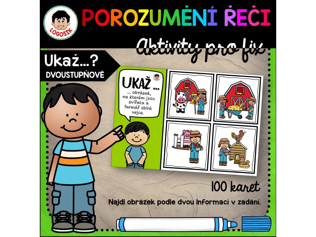 Ukaž…? Dvoustupňový pokyn není jen běžný soubor karet k vytištění. Je to promyšlený pracovní nástroj pro rozvoj porozumění řeči, který můžete využít doma, v logopedické péči i při práci s dětmi v mateřské škole.