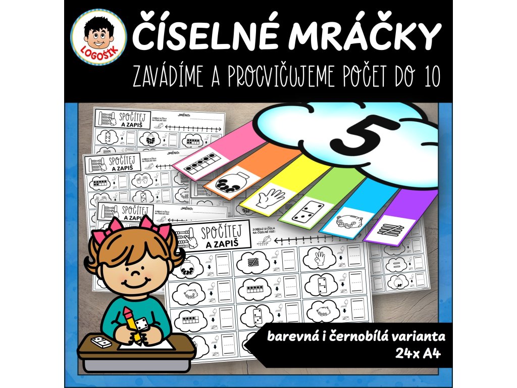 Materiál je vhodný pro mateřskou školu i 1. třídu ZŠ. Mráčky si navíc můžete postupně vystavovat ve třídě, takže během práce s čísly vznikne celá řada mráčků od 1 do 10 jako stálá vizuální opora.