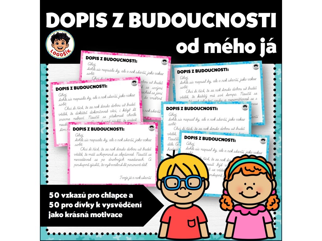 Dopis z budoucnosti je vhodný zejména při pololetí, na konci školního roku nebo v obdobích změn. Učitel si vybírá z hotových textů a může je použít bez další přípravy.
