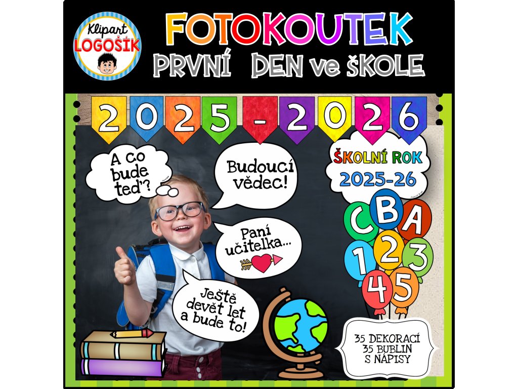 Vytvořte nezapomenutelný první den! Ve fotokoutku je 88 bublina dekorací napříč ročníky.