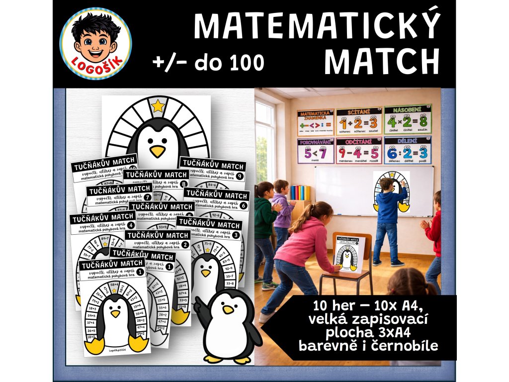 Matematický match přináší do hodiny matematiky pohyb, energii a aktivní zapojení dětí. Je navržený tak, aby děti počítaly samostatně, soustředily se na úkol a zároveň měly radost ze hry.