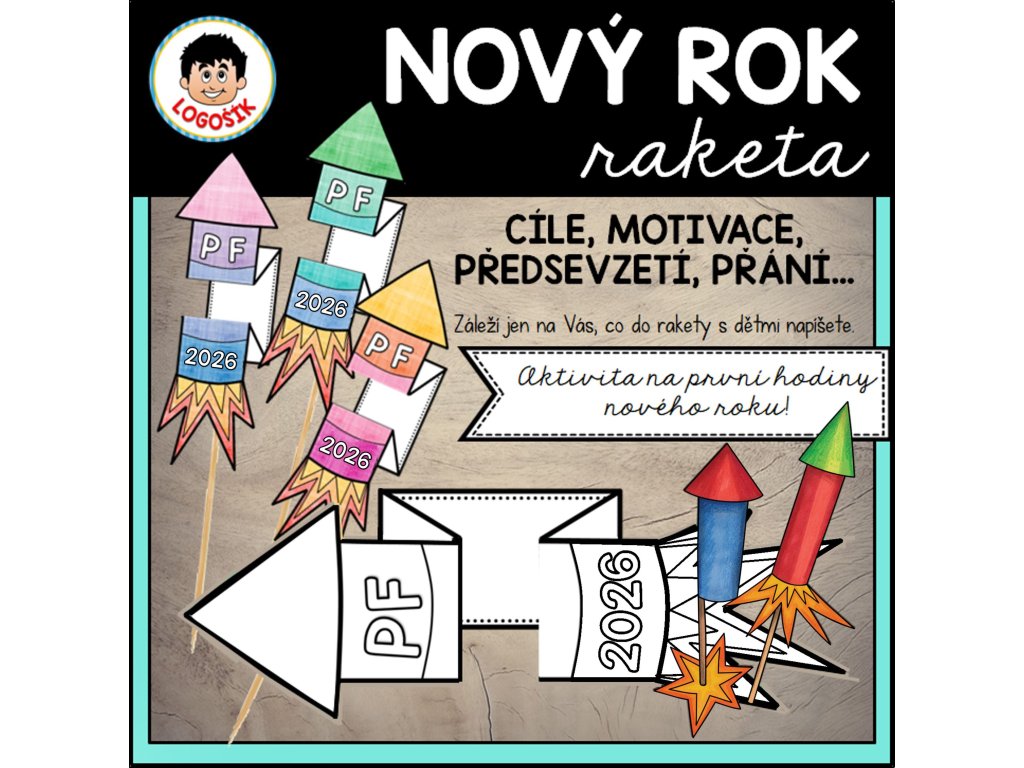 Nový rok – raketa je tvořivý pracovní materiál, který dětem pomáhá uchopit začátek nového roku smysluplně a srozumitelně. Formou jednoduché skládací rakety si děti formulují svá přání, cíle, motivaci nebo předsevzetí a symbolicky je „vysílají“ do nového roku.