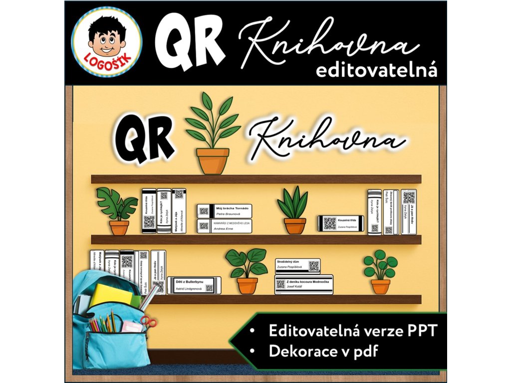 QR knihovna – editovatelná dekorace i aktivita pro žáky