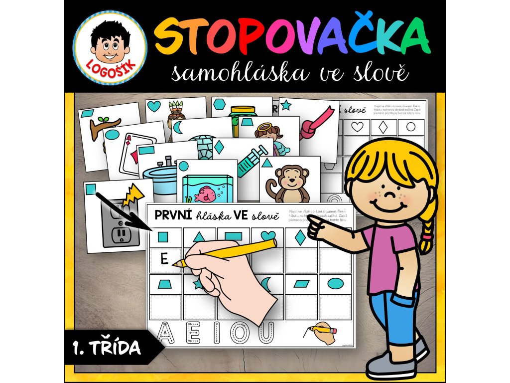Stopovačka nabízí dětem aktivní cestu, jak se učit rozpoznat a správně zapsat první samohlásku ve slově – a zároveň je to bude bavit.