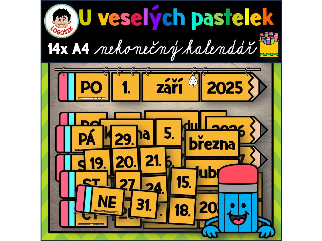 - veselá postavička pastelky jako motivátor a pomocník při práci s kalendářem.