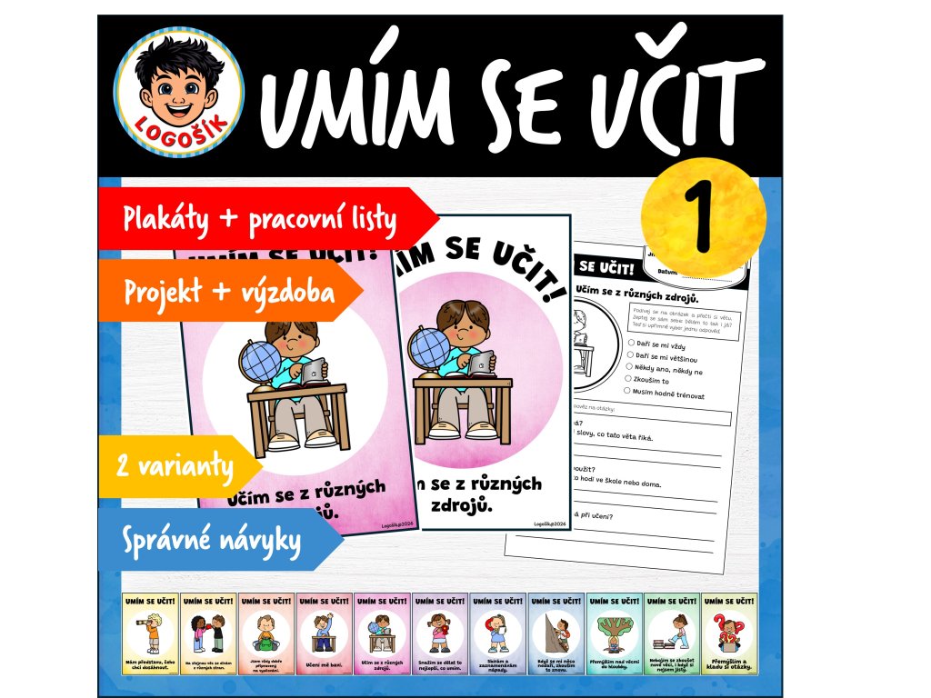 Je třeba naučit děti učit – ne jen jim předávat hotové vědomosti. Materiál UMÍM SE UČIT! 1 vám dá do ruky ucelený, vizuálně přehledný a dětem srozumitelný systém, jak s nimi o učebních návycích mluvit, jak je společně sledovat a jak postupně budovat zdravý vztah k učení.