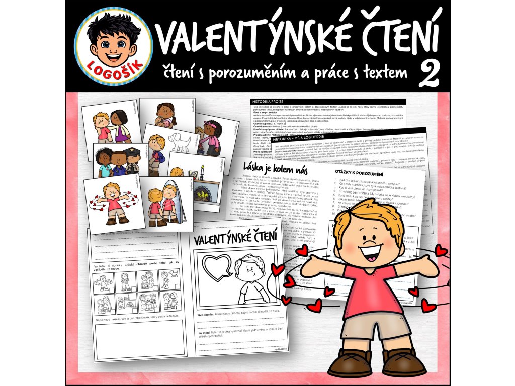 Materiál Valentýnské čtení 2 navazuje na oblíbenou sérii čtenářských aktivit a přináší nový příběh „Láska je kolem nás“. Děti v něm objevují, že láska není jen velké slovo, ale každodenní drobné projevy – v rodině, mezi kamarády, ve škole, při pomoci druhým i v péči o sebe.