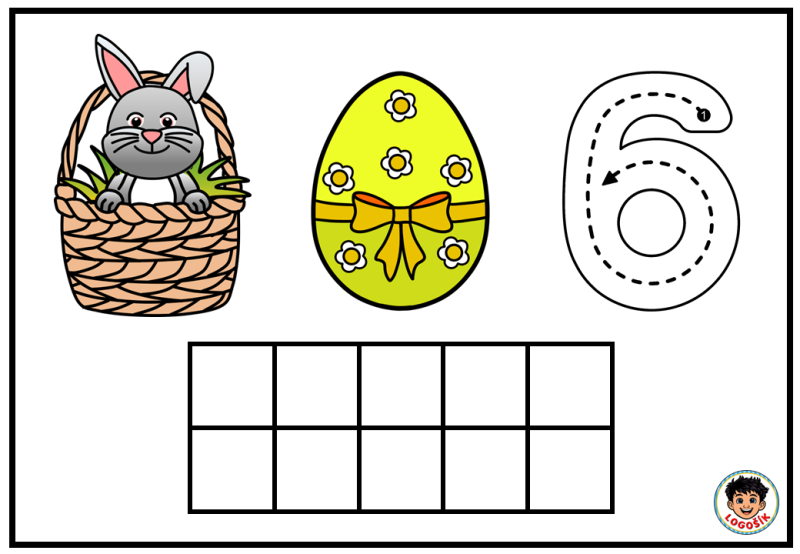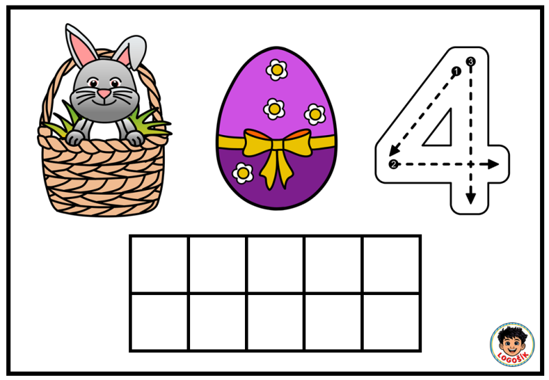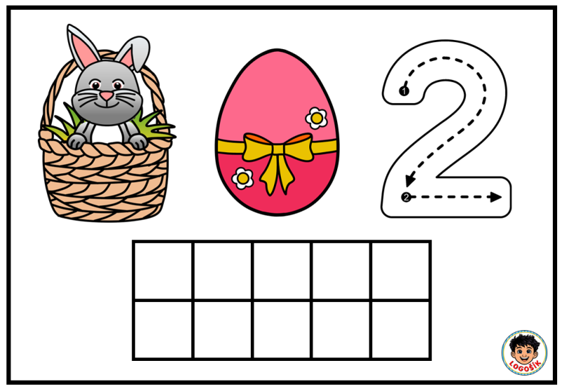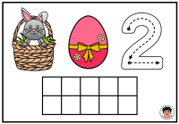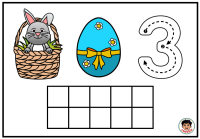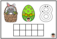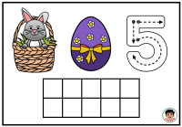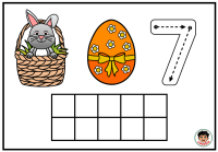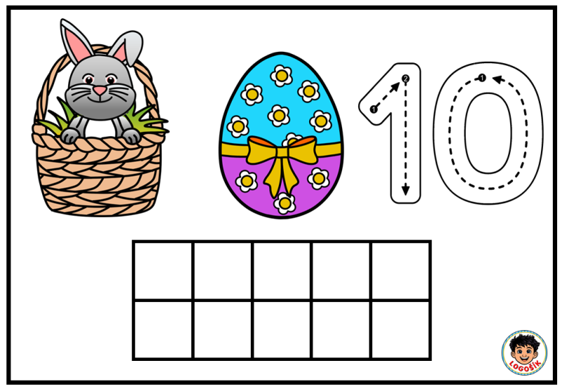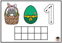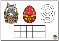 Na každé kartičce dítě najde milý velikonoční motiv se zajíčkem v košíku, barevné vajíčko a číslici. Součástí kartičky je také desetirámec, do kterého dítě vkládá kuličky z modelíny podle zadaného počtu. Dítě tak nevidí číslo jen jako znak, ale zároveň si jeho množství skutečně vytvoří vlastní rukou. To je velmi důležité zejména v období, kdy se teprve učí chápat vztah mezi číslicí a počtem.